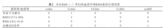 RhD(-)個體可能產(chǎn)生抗-D,該抗體可引發(fā)嚴(yán) 重的HDN甚至胎兒死亡。因此對于孕期婦女來說,為 了盡量避免胎兒宮內(nèi)及新生兒溶血的發(fā)生,需要密切 監(jiān)測孕婦體內(nèi)抗-D,必要時需輸注Rh免疫球蛋白進 行阻斷。臨床上通過血清學(xué)檢測的RhD(-),可能 部分個體并非外顯子全缺失,而是由于部分缺失或某 個堿基變異導(dǎo)致。目前國內(nèi)常見的RHD基因分型 主要有放散D(DEL)、部分D與弱D等變異型,DEL 型作為國內(nèi)外較常見的RHD變異型,其分子機制已被 報道。DEL的RHD變異型基因在第9處外顯子有一處 末位堿基突變,促使RNA轉(zhuǎn)錄時內(nèi)含子被錯誤剪切,導(dǎo)致無法正常表達RHD蛋白。